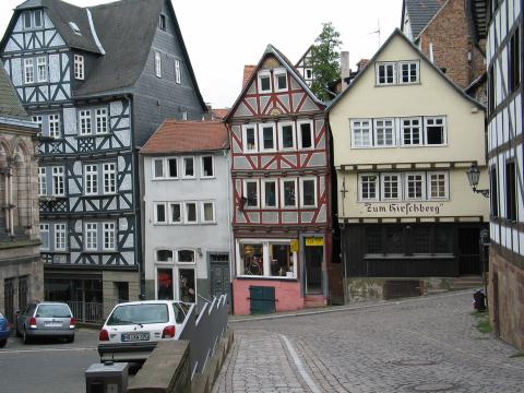 Rundgang durch die Oberstadt von Marburg im Juli 2003. Zu dieser Zeit fand gerade die Ausstellung "Treppenkunst" statt. Auf einigen Fotos sind Objekte dieser Ausstellung zu sehen, die aber inzwischen wieder entfernt wurden. |