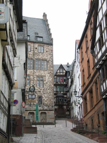 Rundgang durch die Oberstadt von Marburg im Juli 2003. Zu dieser Zeit fand gerade die Ausstellung "Treppenkunst" statt. Auf einigen Fotos sind Objekte dieser Ausstellung zu sehen, die aber inzwischen wieder entfernt wurden. |