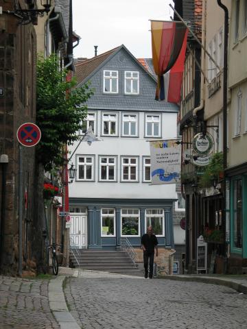 Rundgang durch die Oberstadt von Marburg im Juli 2003. Zu dieser Zeit fand gerade die Ausstellung "Treppenkunst" statt. Auf einigen Fotos sind Objekte dieser Ausstellung zu sehen, die aber inzwischen wieder entfernt wurden. |