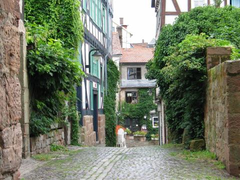 Rundgang durch die Oberstadt von Marburg im Juli 2003. Zu dieser Zeit fand gerade die Ausstellung "Treppenkunst" statt. Auf einigen Fotos sind Objekte dieser Ausstellung zu sehen, die aber inzwischen wieder entfernt wurden. |